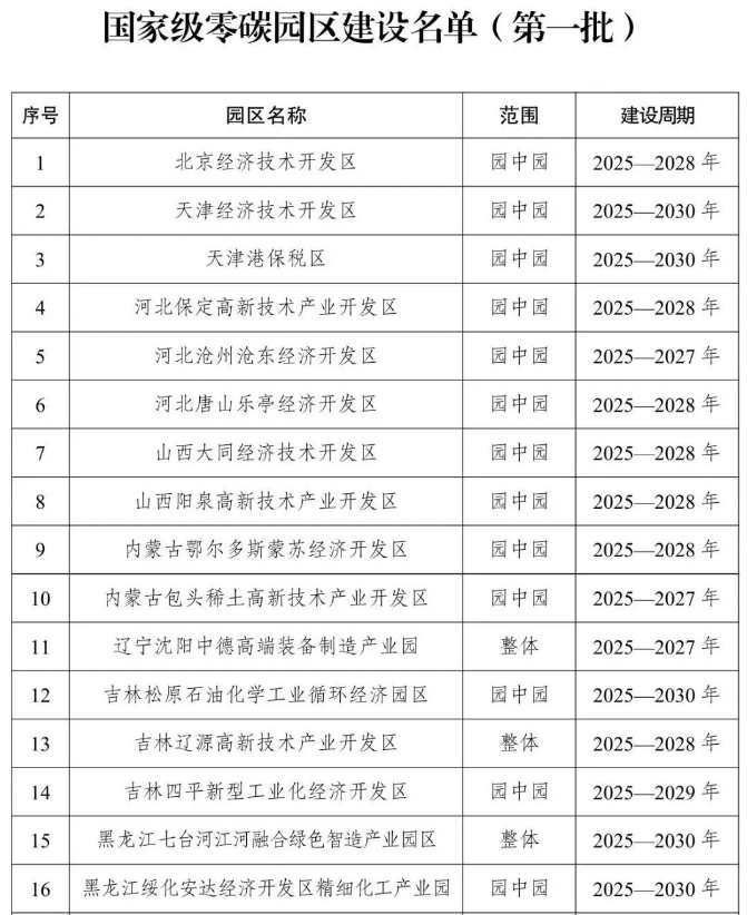 12月26日,国家发展改革委、工业和信息化部、国家能源局联合印发《国家级零碳园区建设名单(第一批)》。