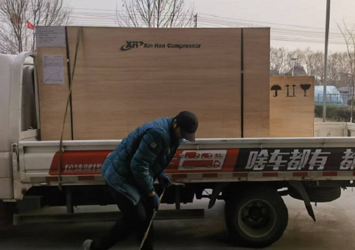 On January 16th,The Xinran 3 cubic meter, 350 kilogram high-pressure air compressor (including UL certification) was shipped to the United States. The Xinran high-pressure air compressor was loaded onto a truck and sent to the Shanghai port for LCL export to the United States, assisting a certain American group's oil extraction project.